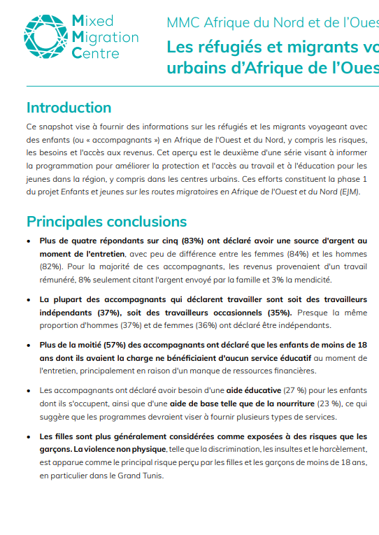 Refugees and migrants travelling with children in urban centres in West and North Africa